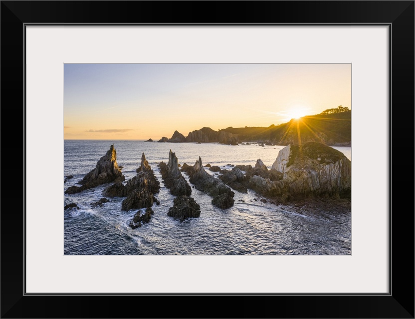 <p>Playa Gueirua, Santa Marina, Asturias, Spain. La Forcada (The Pitchfork) sea stacks at sunrise</p>