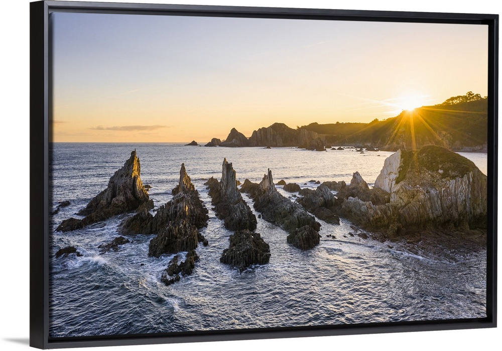 <p>Playa Gueirua, Santa Marina, Asturias, Spain. La Forcada (The Pitchfork) sea stacks at sunrise</p>
