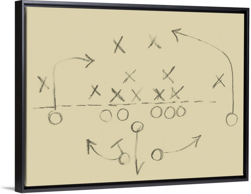 <p>Sketch of a football play in a diagram of X's and O's.</p>