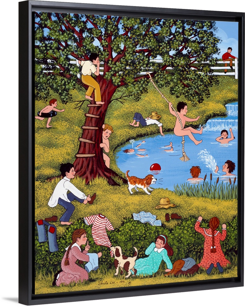 <p>Sheila Lee's philosophy to depict characters enjoying a simpler time, with a healthy dose of humor. Bright colors and intricate composition tells stories within the story.</p>