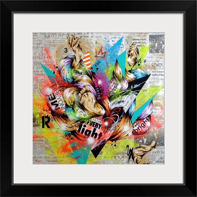 <p>Contemporary artwork with a vibrant urban art feel, using wild colors and shapes.</p>