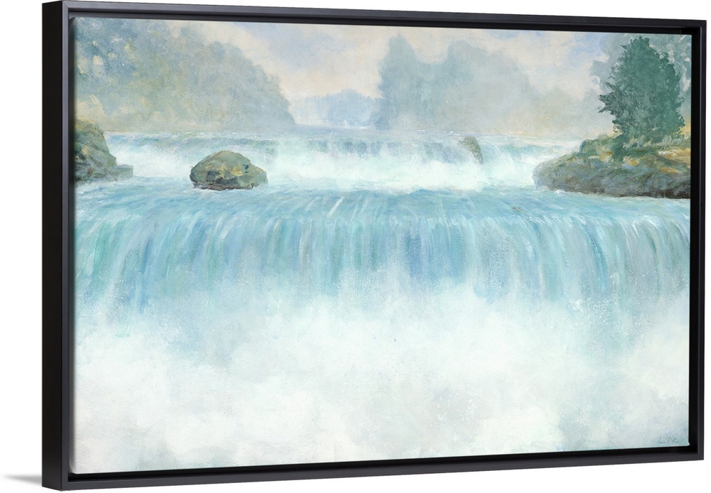 <p>Contemporary art print of a rushing waterfall with cool blue water.</p>