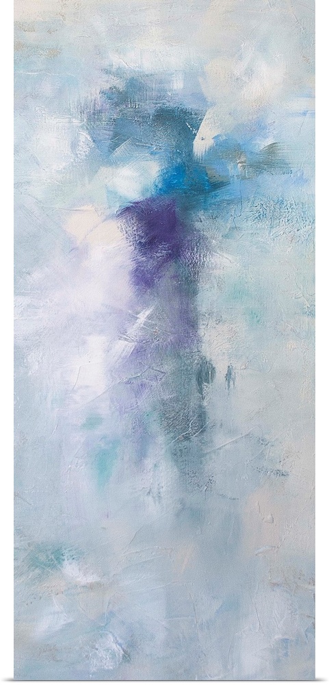 <p>Contemporary abstract painting using washed out cloud like textures surrounding vibrant splashes of color.</p>