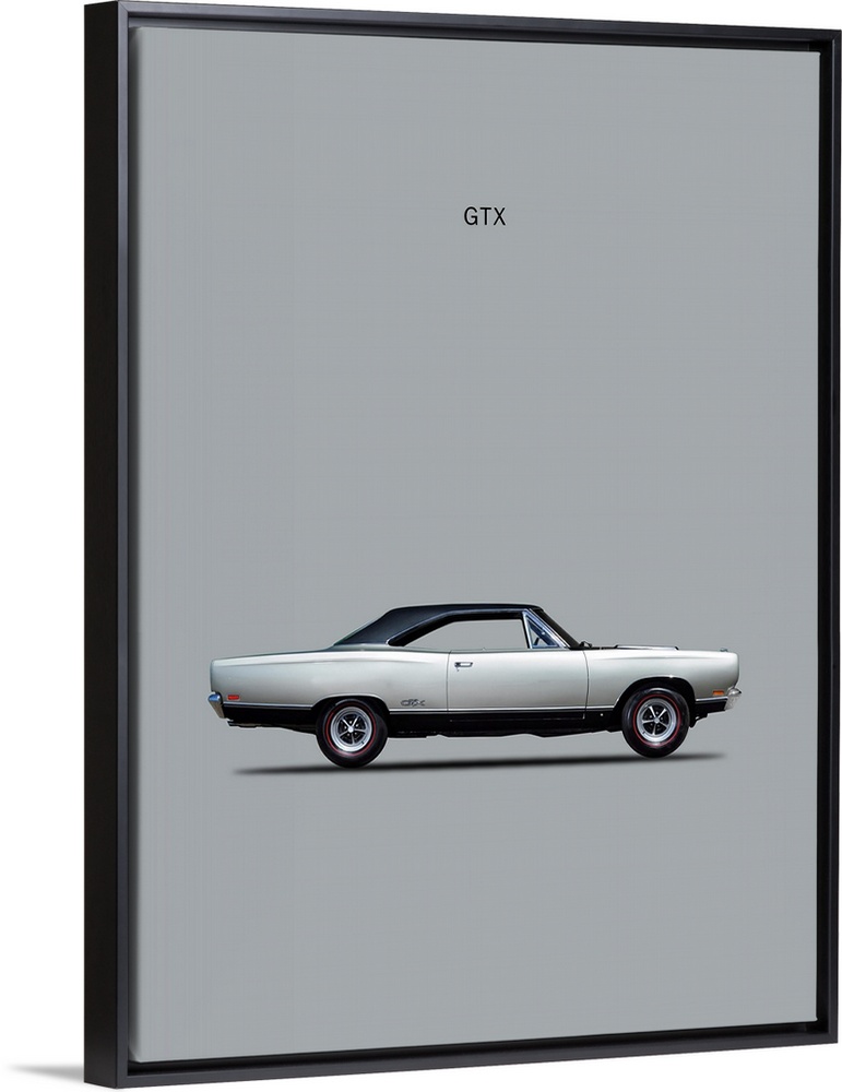 <p>Photograph of a silver Plymouth GTX Coupe 1969 printed on a silver background</p>
