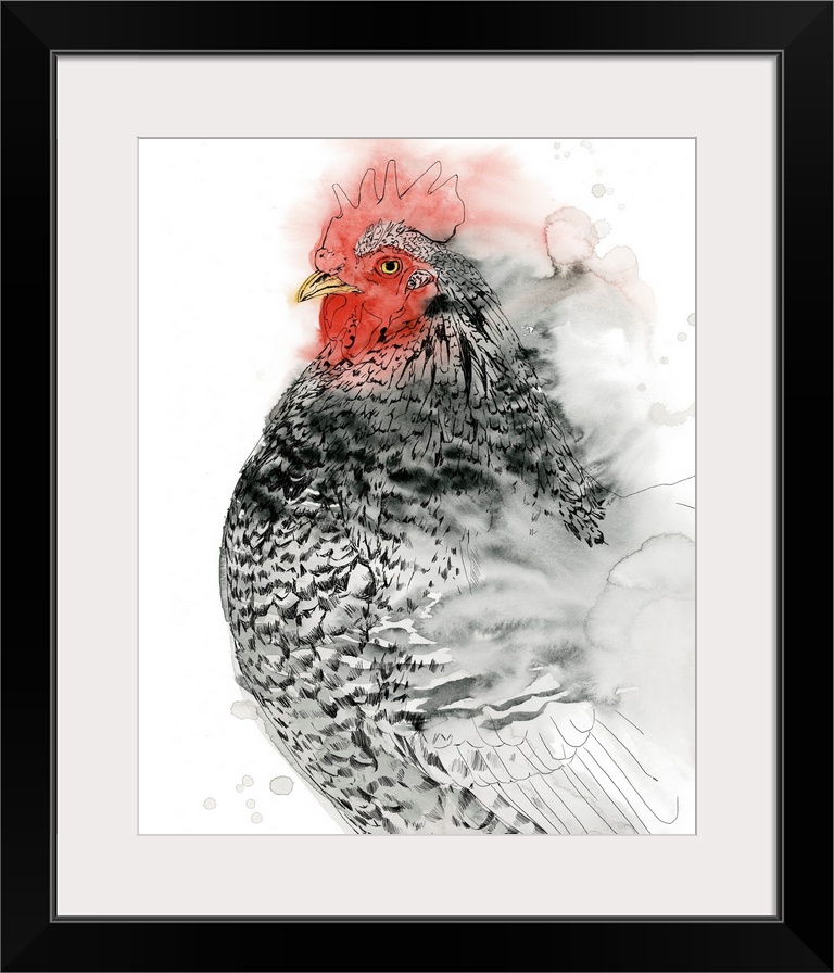 Art Farmhouse Black and White Wall Art Wildlife Decorative Art Painting Grace Popp Watercolor Wildlife Bird Chicken
