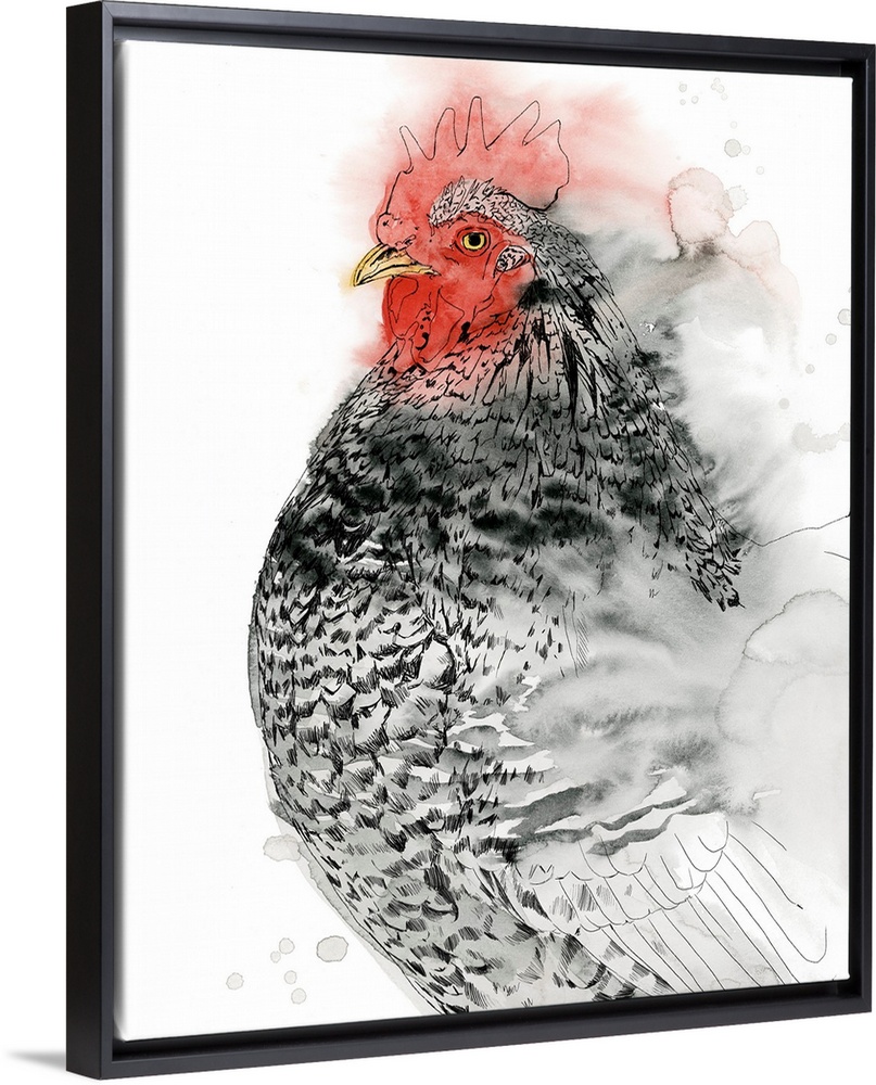 Art Farmhouse Black and White Wall Art Wildlife Decorative Art Painting Grace Popp Watercolor Wildlife Bird Chicken