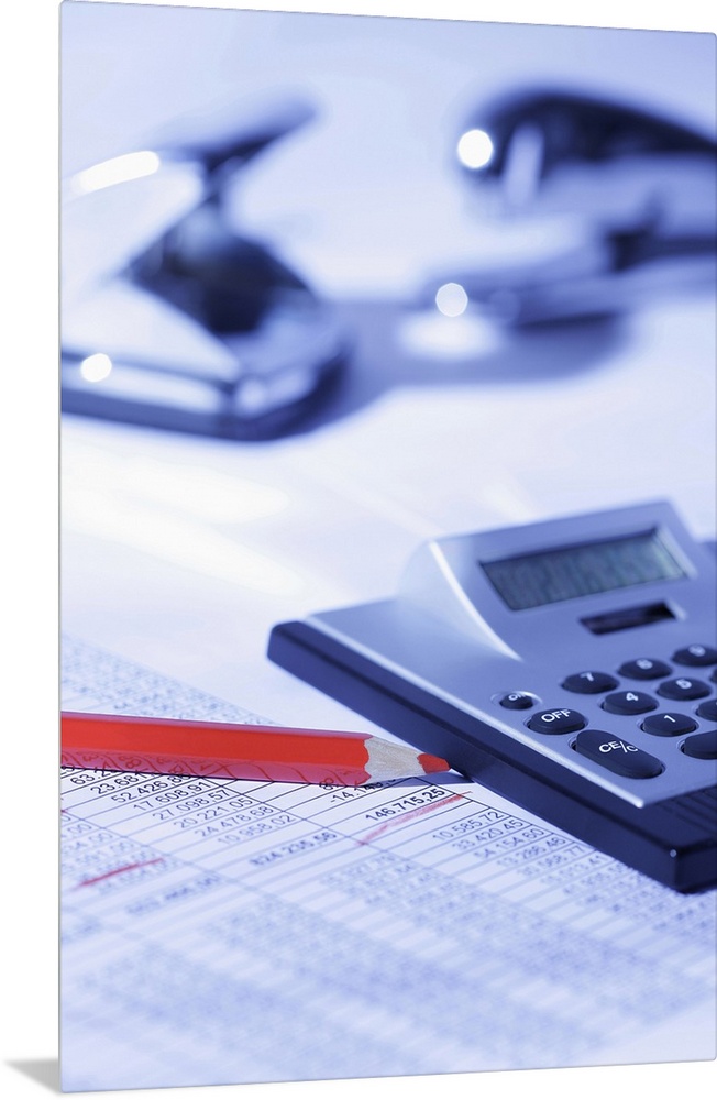 <p>Pocket calculator and red pencil on spreadsheet</p>