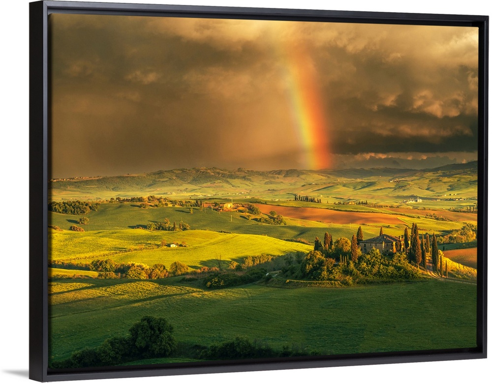 <p>Podere Belvedere after a storm with rainbow, Val d'Orcia, Tuscany, Italy</p>