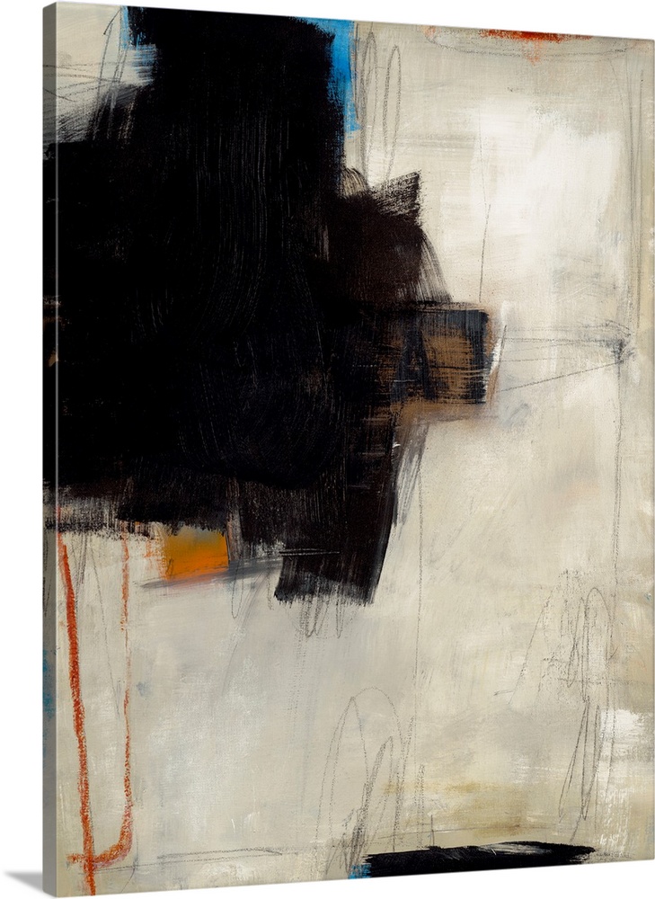 <p>Dynamic abstract art featuring bold black strokes, vibrant blue and orange accents, and expressive lines on a neutral background, creating a modern, energetic aesthetic.</p>