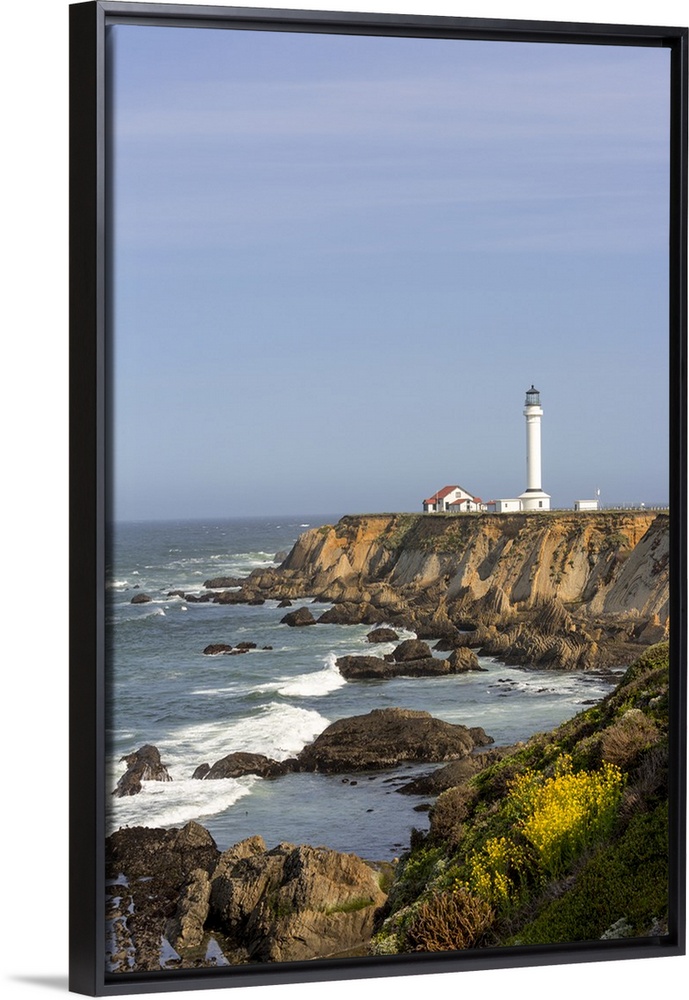 <p>Point Arena lighthouse on cliffs over the Pacific Ocean near Point Arena, California, USA</p>