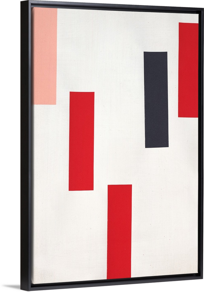 <p>Geometric abstract with pink, red, and black rectangles falling from the top towards the bottom of the canvas.</p>