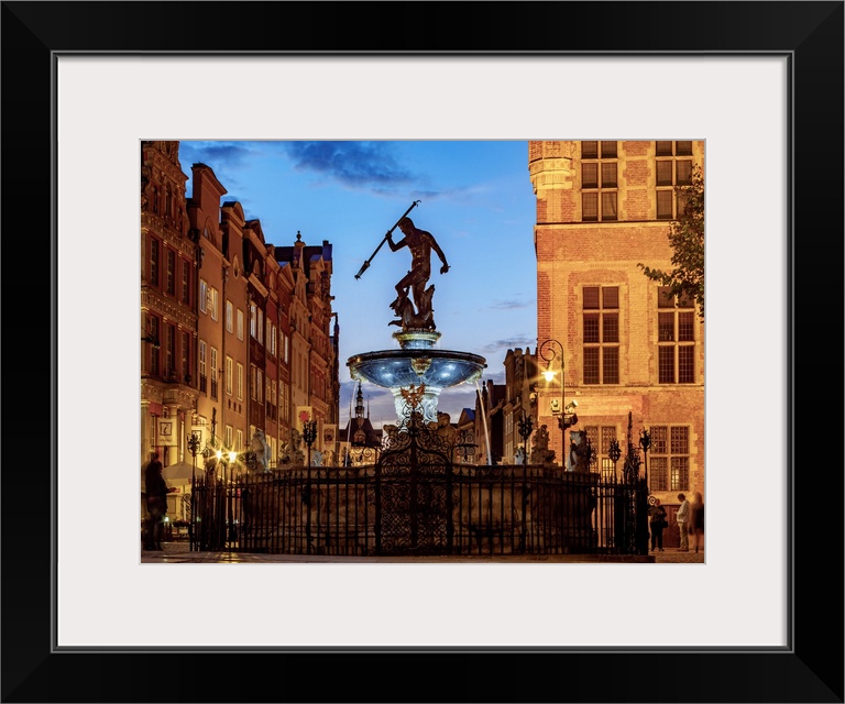 <p>Poland, Pomeranian Voivodeship, Gdansk, Old Town, Neptune's Fountain at twilight.</p>