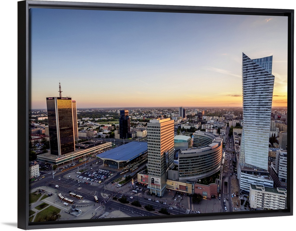 <p>Poland, Masovian Voivodeship, Warsaw City Center Skyscrapers at sunset.</p>
