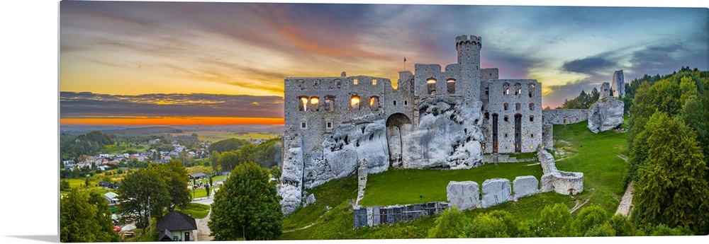 <p>Poland, Silesia, Ogrodzieniec, Trail of the Eagle's Nests, Medieval castle at sunrise.</p>