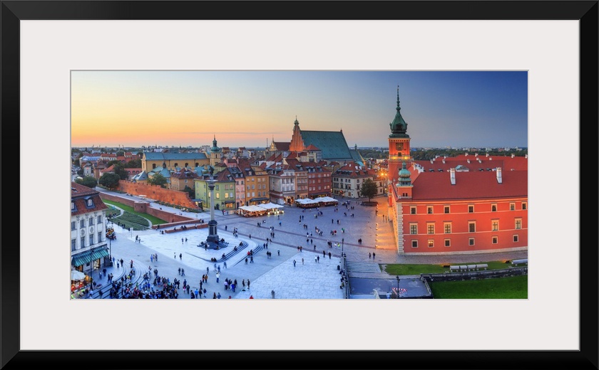 <p>Poland, Masovia, Warsaw, Warsaw Royal Palace, Palace Square (Plac Zamkowy) with the Royal Castle and Sigismund's Column at sunset.</p>