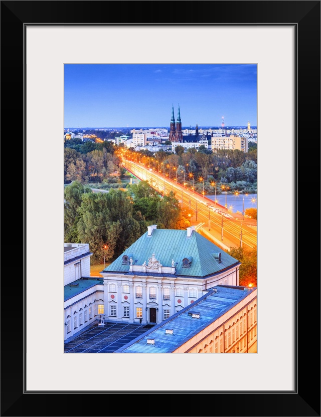 <p>Poland, Masovia, Warsaw, Warsaw Royal Palace, Royal Palace with Saint Florian's and Saint Michael's Cathedral in the background at night.</p>