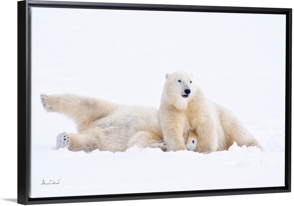 <p>Down for the count polar bears play wrestling on sub-arctic Hudson Bay ice and snow, Churchill, MB, Canada.</p>