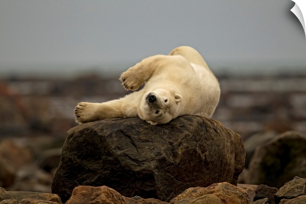 <p>Polar Bear Laying On Rock, Manitoba, Canada</p>
