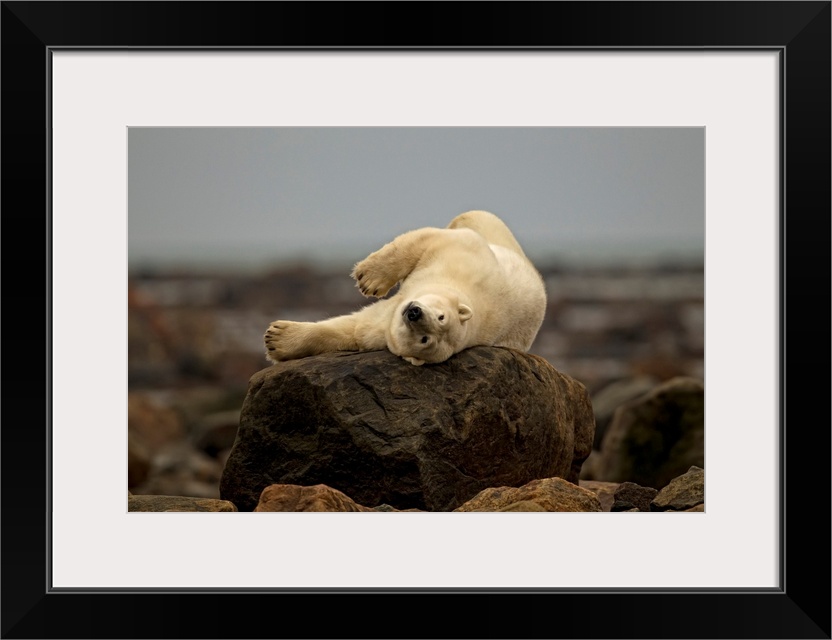<p>Polar Bear Laying On Rock, Manitoba, Canada</p>