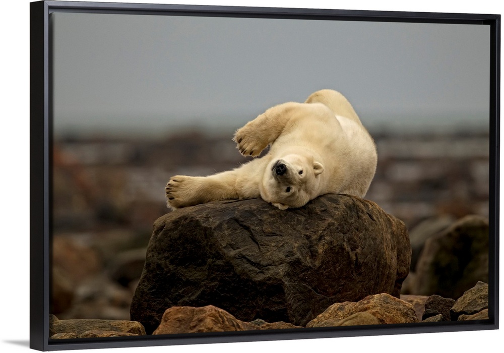 <p>Polar Bear Laying On Rock, Manitoba, Canada</p>