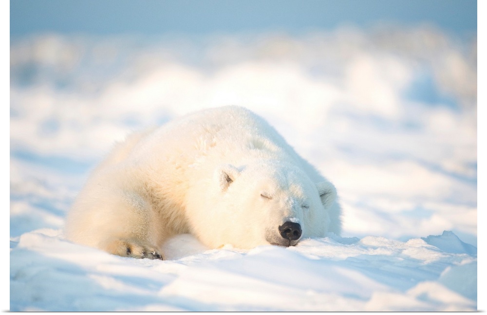 <p>Polar bear (Ursus maritimus), young bear rests on the newly frozen pack ice, Beaufort Sea, off the 1002 area of the Arctic National Wildlife Refuge, North Slope, Alaska.</p>