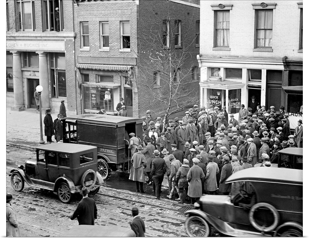 <p>Police raid on a illegal gamblers' den on East 12th Street in New York City. Photographed on 31 January 1925.</p>