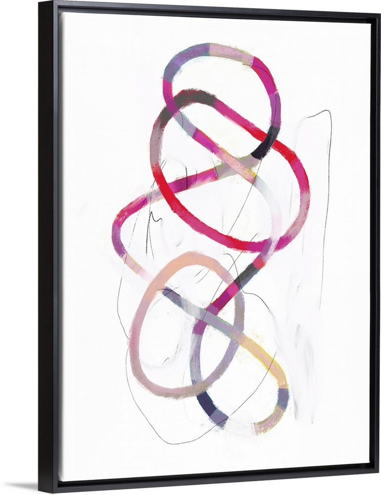 <p>This contemporary artwork features intertwining noodles of striped color with sketched lines throughout.</p>