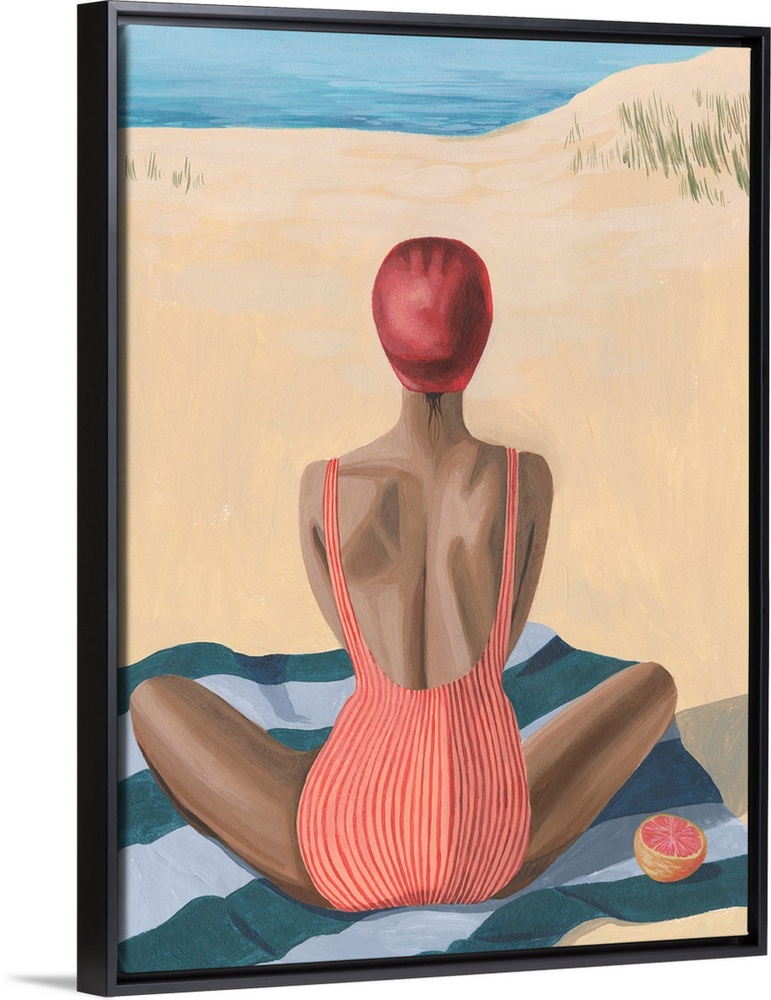Art Art by Decor Style Coastal Bathroom Art Coastal Bathroom Contemporary Art Figurative Summer's Last Hurrah Painting People Figurative Pink Wall Art Grace Popp