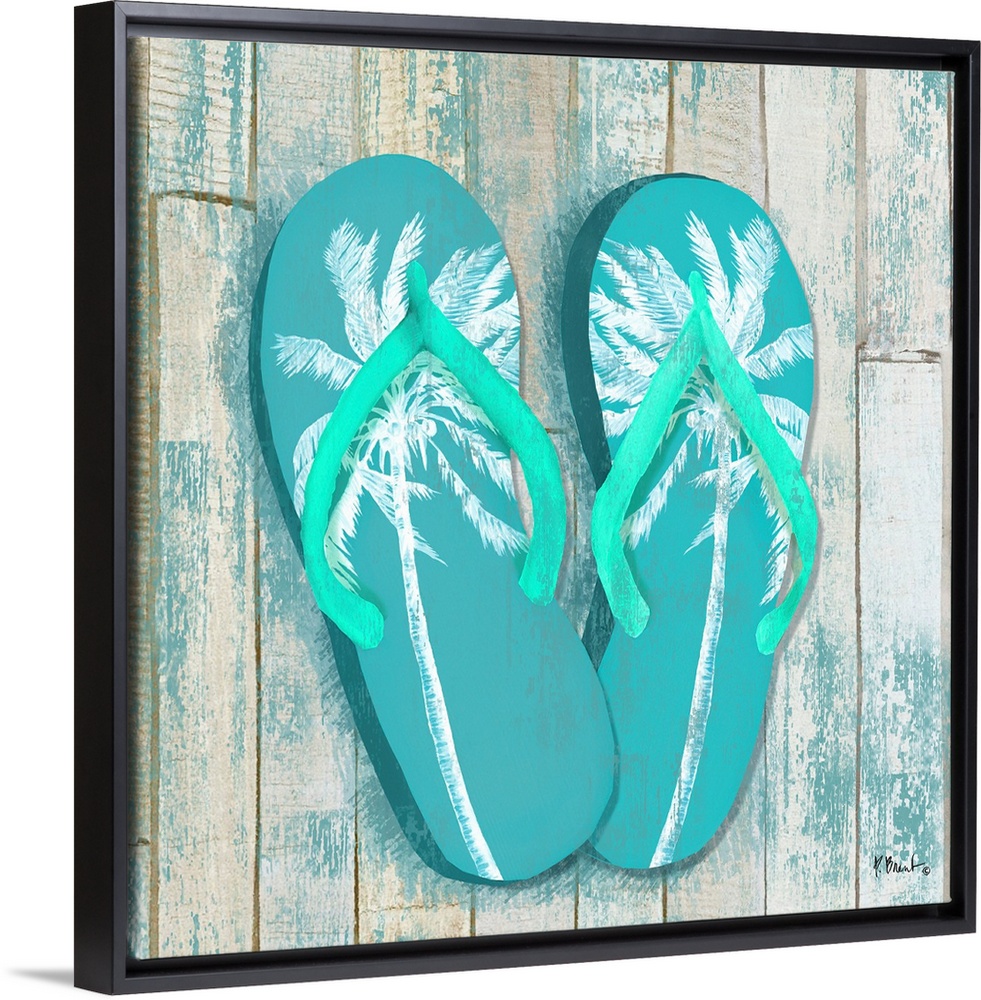 <p>Flip flops on a wooden background.</p>