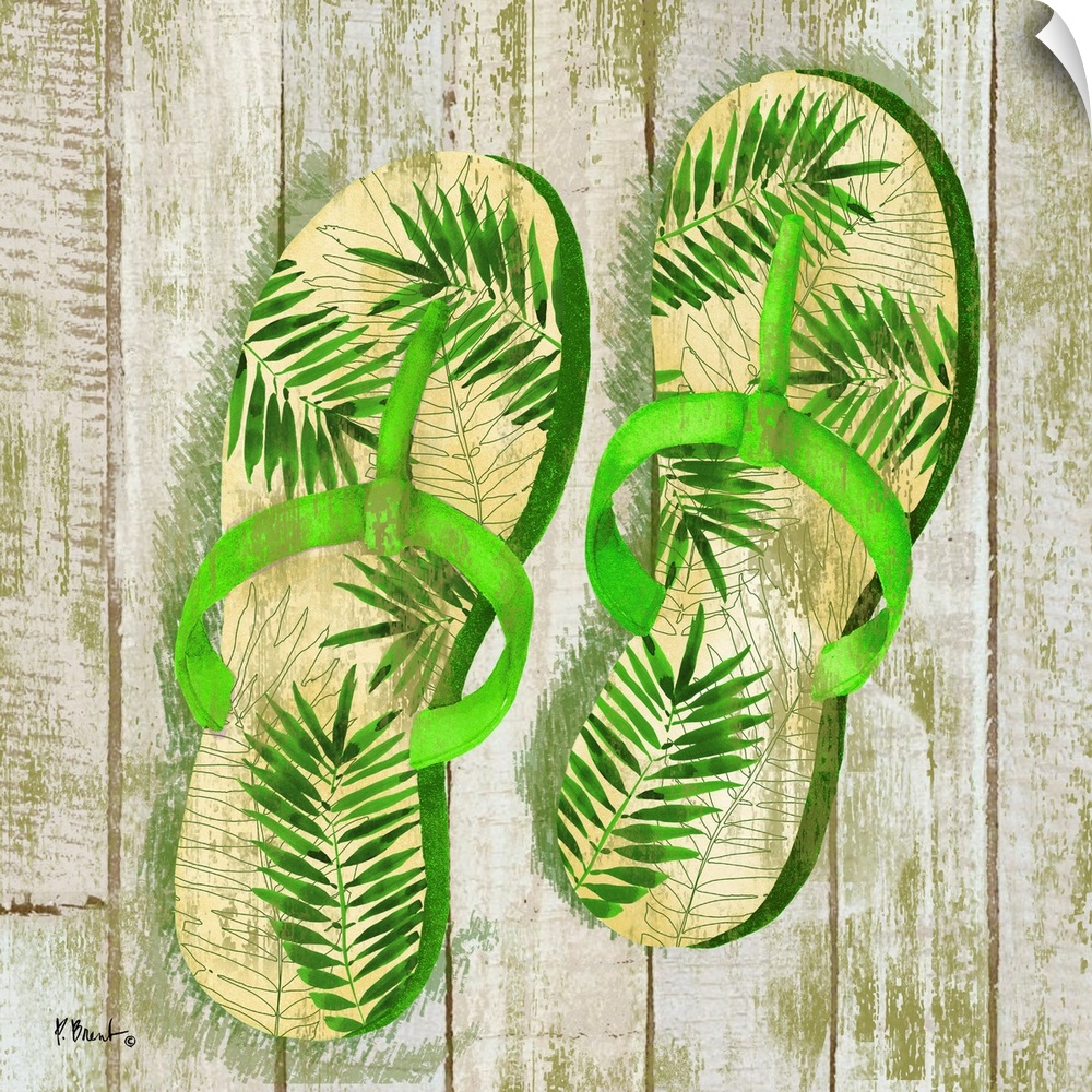 <p>Flip flops on a wooden background.</p>