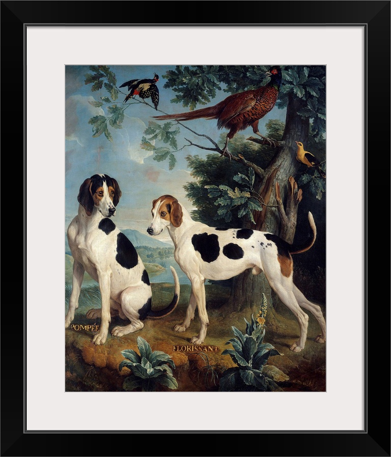<p>Pompee and Florissant, dogs of Louis XIV (1638-1715). Painting by Francois Desportes (1661-1743), 1739. Castle Museum, Compiegne , France</p>