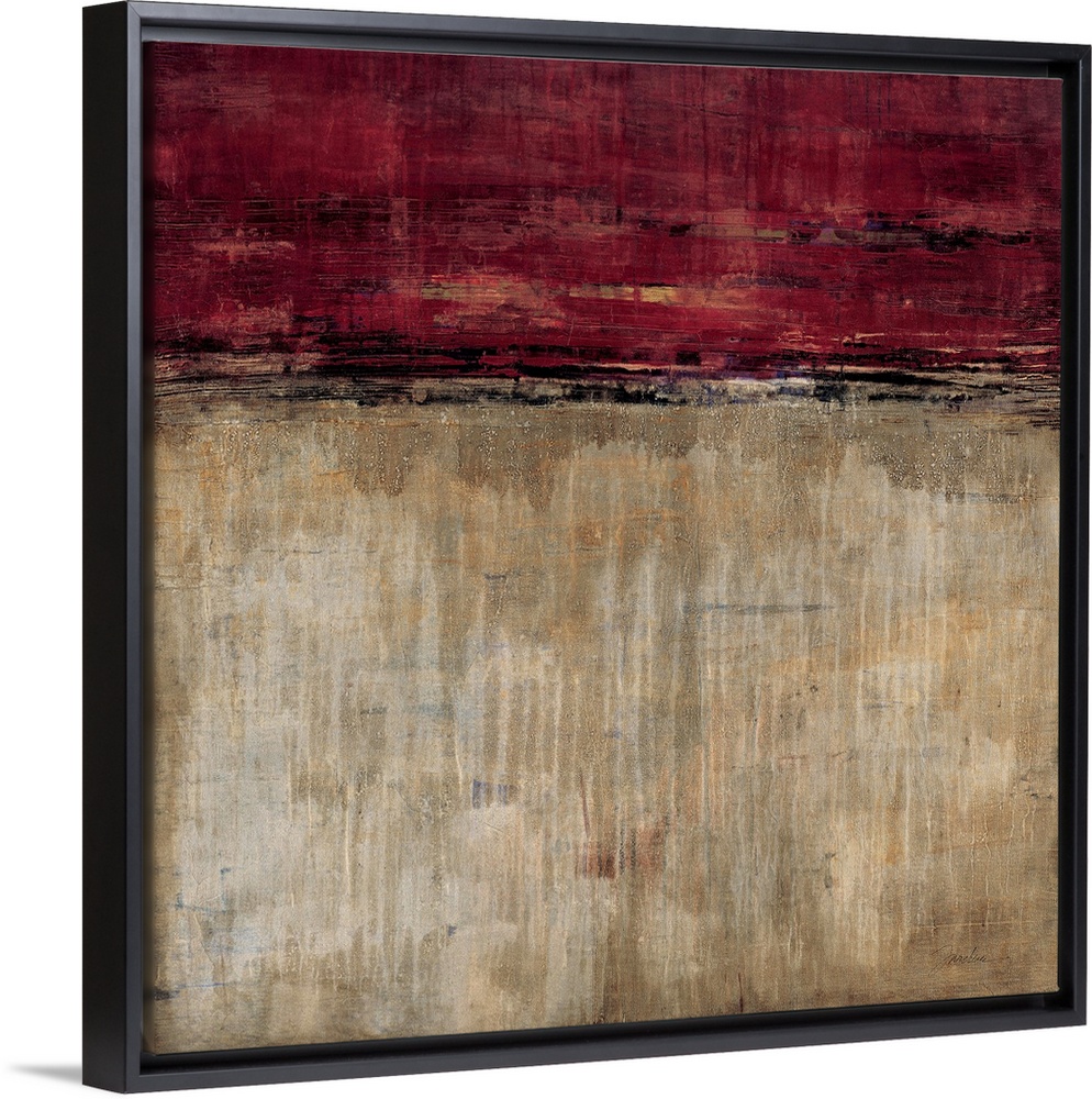 <p>Contemporary abstract painting using earth tones and dark red to make a color field.</p>