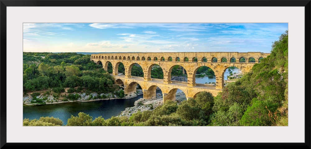 <p>Pont du Gard Roman aqueduct over Gard River in late afternoon, Gard Department, Languedoc-Roussillon, France.</p>