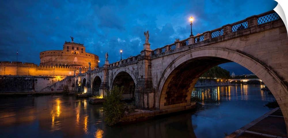 <p>Ponte Sant'Angelo over river with Hadrian's Tomb in the background, Rome, Lazio, Italy.</p>