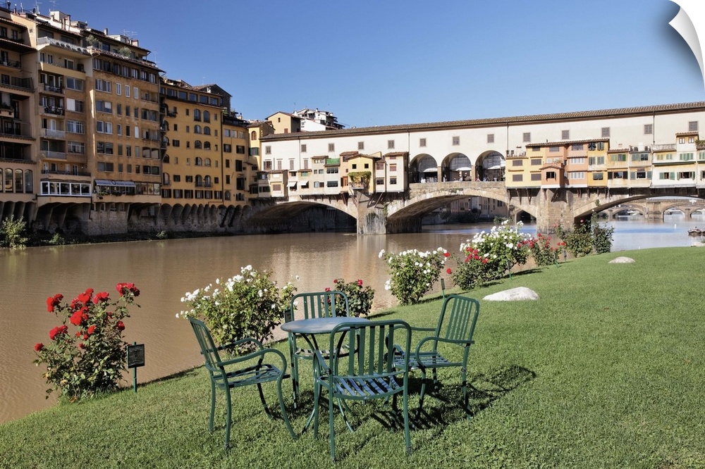 <p>Ponte Vecchio and table along Arno Rive</p>