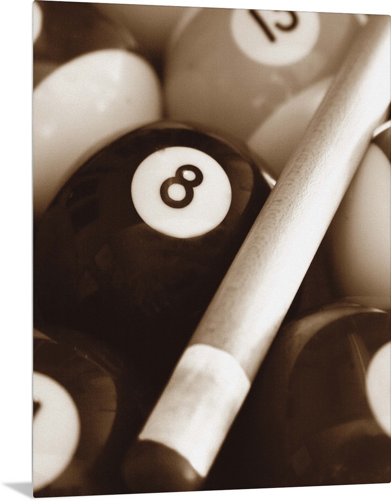 <p>Sepia toned photo of a pool cue and pool balls.</p>