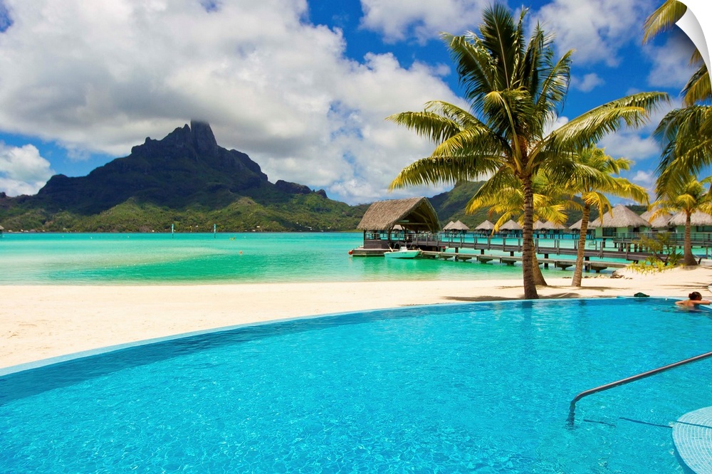 <p>A swimming pool on the beach at the Le Meridien resort, with Mount Otemanu in the distance.</p>