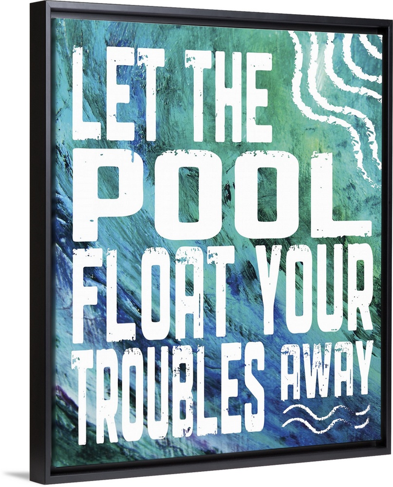 <p>The words "let the pool float your troubles away" on a textured blue and green wavy background.</p>
