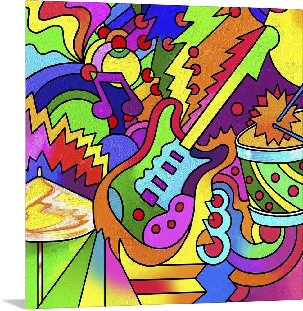 Art Contemporary Art Graphic Art Howie Green Multicolor Wall Art Music, Movies and TV Music Instruments Guitar