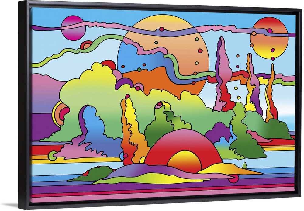 <p>Contemporary artwork of a sci-fi inspired colorful landscape.</p>