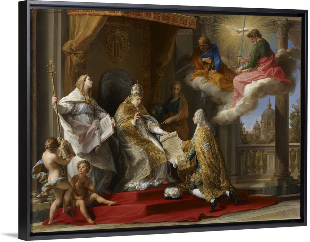 <p>Pope Benedict XIV presenting the Encyclical 'Ex Omnibus' to the Comte de Stainville, later Duc de Choiseul, 1757 (oil on canvas)</p>