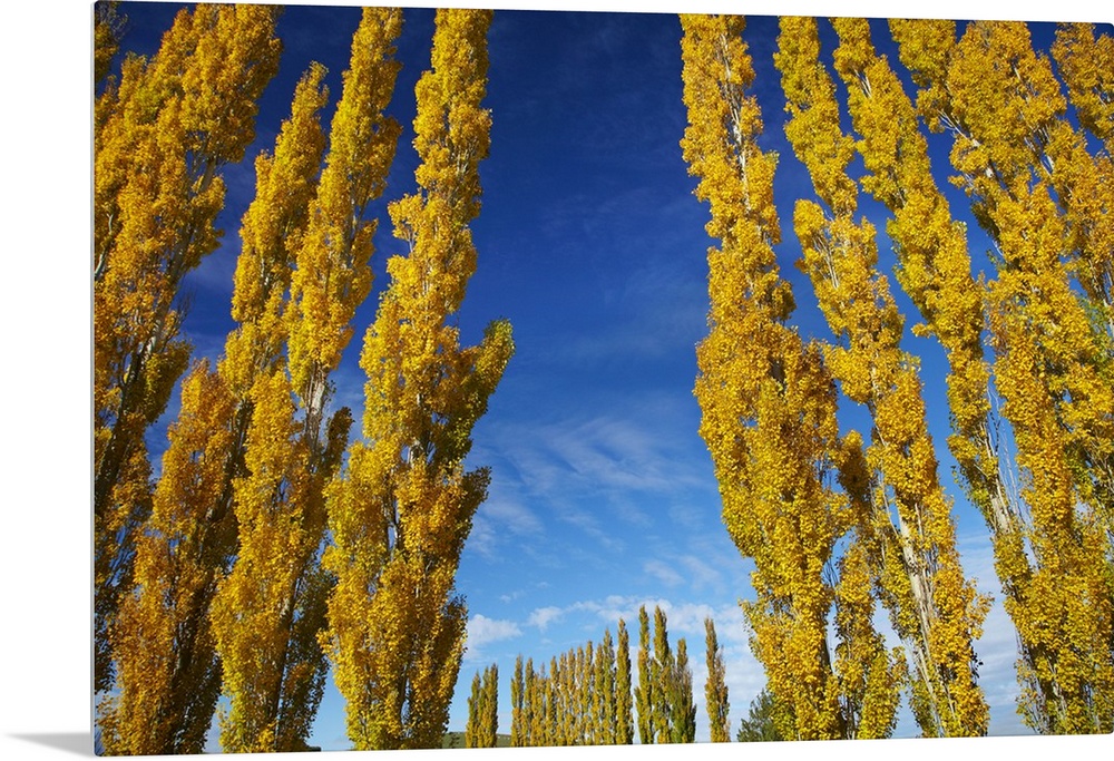 <p>Poplar trees and farmland in autumn, near Lovells Flat, South Otago, South Island, New Zealand.</p>