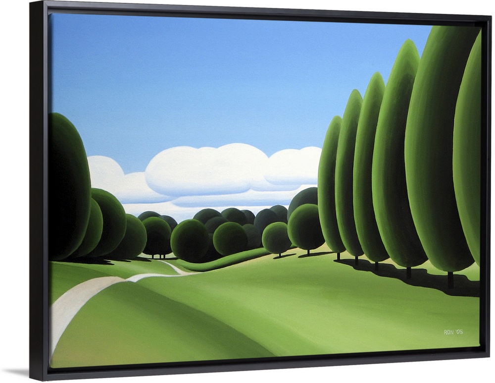 <p>Contemporary painting of a green field with trees.</p>