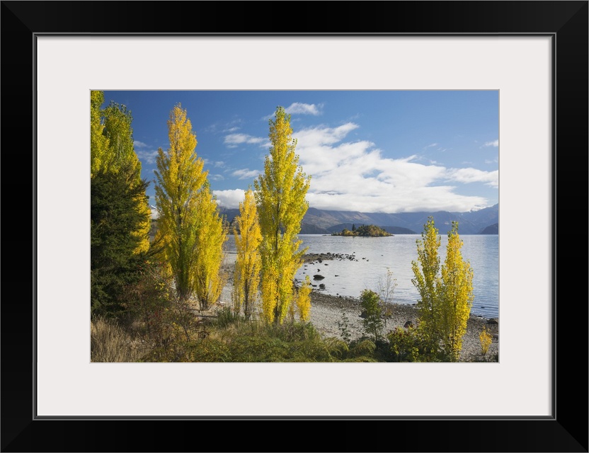 <p>Poplars growing on the shore of Lake Wanaka, autumn, Roys Bay, Wanaka, Queenstown-Lakes district, Otago, South Island, New Zealand, Pacific</p>