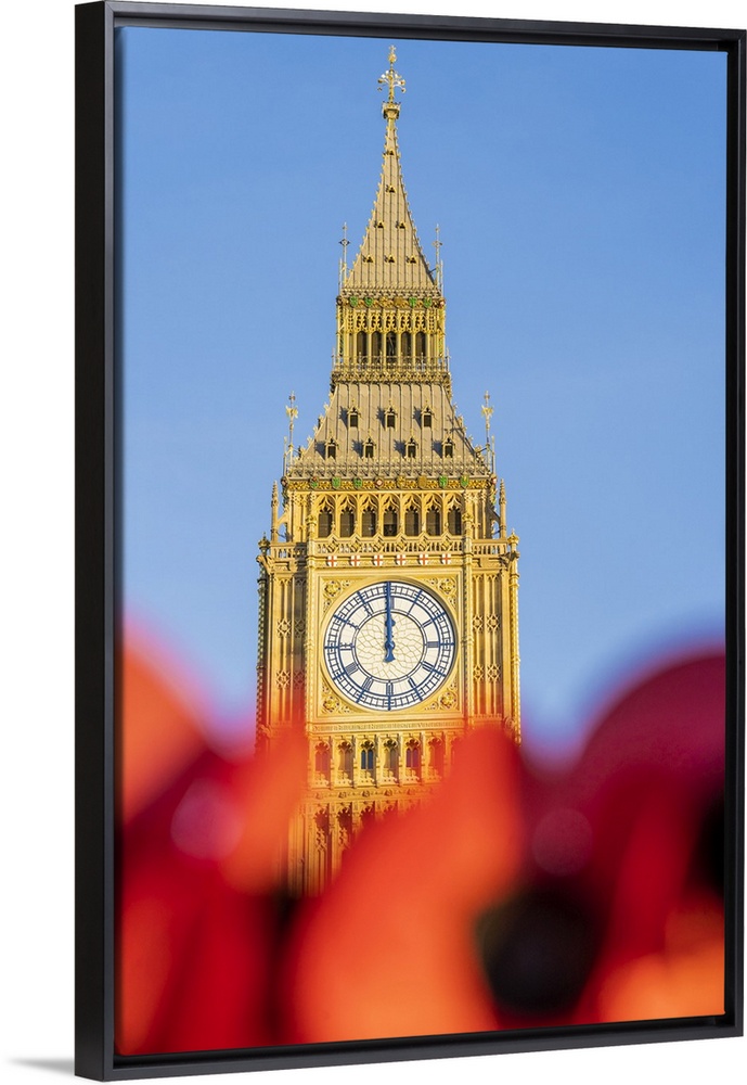 <p>Poppies and Big Ben, also known as Elizabeth Tower. Part of the Houses of Parliament and a Unesco World Heritage site, London, England, UK,</p>