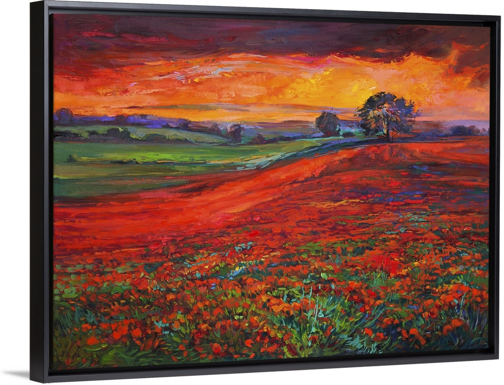 <p>Originally an oil painting of opium poppy (Papaver Somniferum) field in front of beautiful sunset on canvas. Modern impressionism.</p>