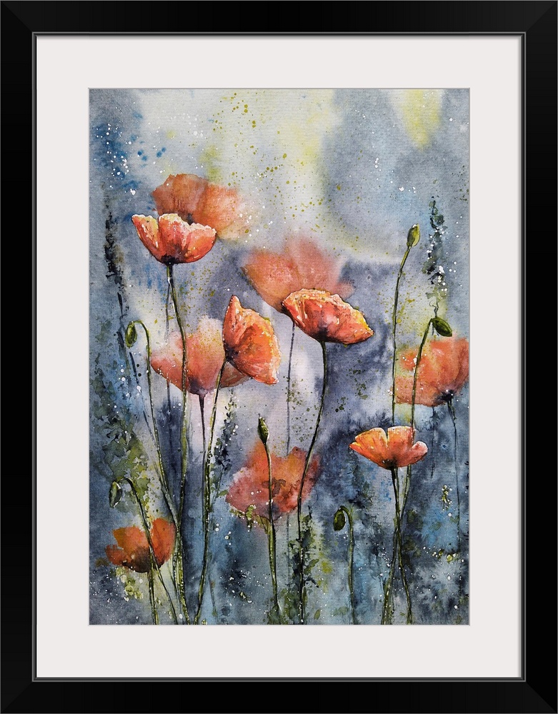 Art Transitional Contemporary Art Florals Poppy Wildflowers Anna Mazur Painting Watercolor
