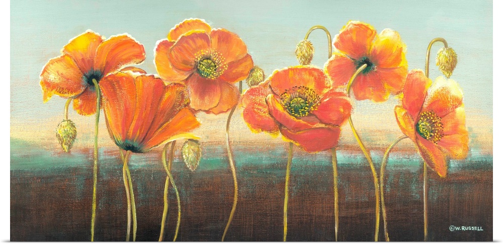 Art Contemporary Art Plants and Flowers Florals Poppy Orange Wall Art Painting Wendy Russell