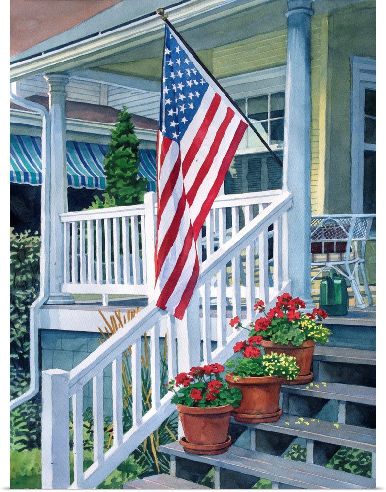 Architecture Houses Art Contemporary Art Flags American Flag Stan Myers Painting Watercolor