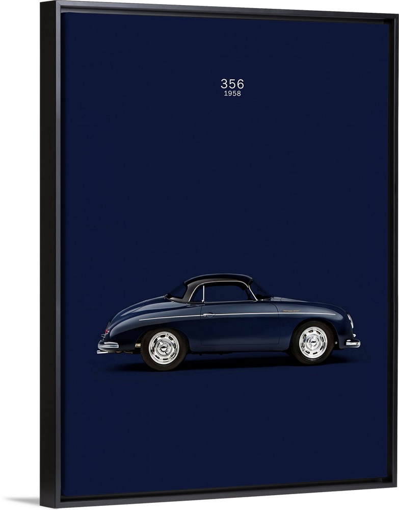 <p>Photograph of a navy blue Porsche 356 1958 Blue printed on a navy blue background</p>